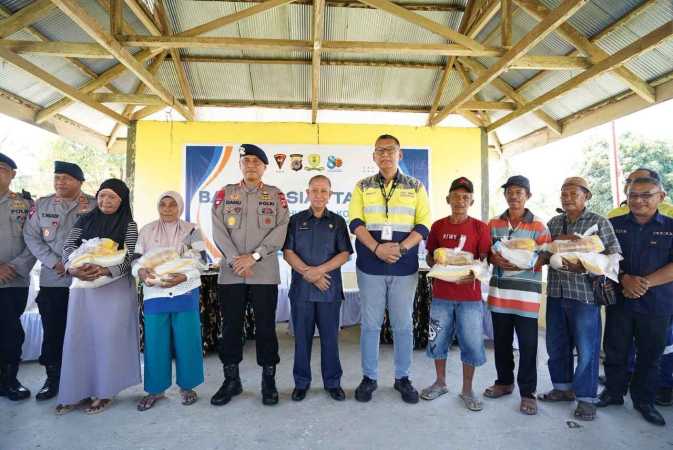 Rekonfunews.com, Pohuwato – Pani Gold Mine berkolaborasi dengan Korps Brimob Polda Gorontalo membagikan 300 paket bantuan beras dan minyak goreng bagi warga Desa Hulawa, Kecamatan Buntulia, Kabupaten Pohuwato Selasa, 11 November 2025, dalam rangka Hari Ulang Tahun (HUT) ke-80 Korps Brimob.
