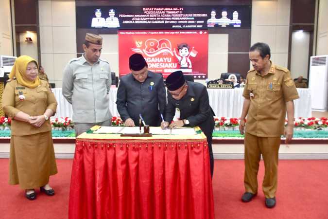 Rekonfunews.com, Pohuwato – Dewan Perwakilan Rakyat Daerah (DPRD) Kabupaten Pohuwato menggelar Rapat Paripurna Ke-21 Pembicaraan Tingkat II Penandatanganan Persetujuan Bersama atas Rancangan Peraturan Daerah (Ranperda) Rencana Pembangunan Jangka Menengah Daerah (RPJMD) Tahun 2025-2029, di ruang rapat DPRD Pohuwato, Selasa, (12/08/2025).