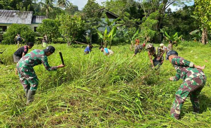 Kegiatan yang berlangsung sejak pagi ini menyasar pembersihan di sepanjang jalan aspal, mulai dari jembatan sebelum Pos hingga lapangan bola Kampung Banda. Keterlibatan personel Satgas disambut antusias oleh masyarakat setempat yang berbondong-bondong turut ambil bagian.