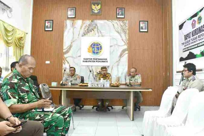 Hal tersebut disampaikan Bupati Pohuwato, Saipul A. Mbuinga, saat membuka Rapat Koordinasi Awal Tim Gugus Tugas Reforma Agraria (GTRA) di Kantor Pertanahan Kabupaten Pohuwato, Selasa (14/04/2026).